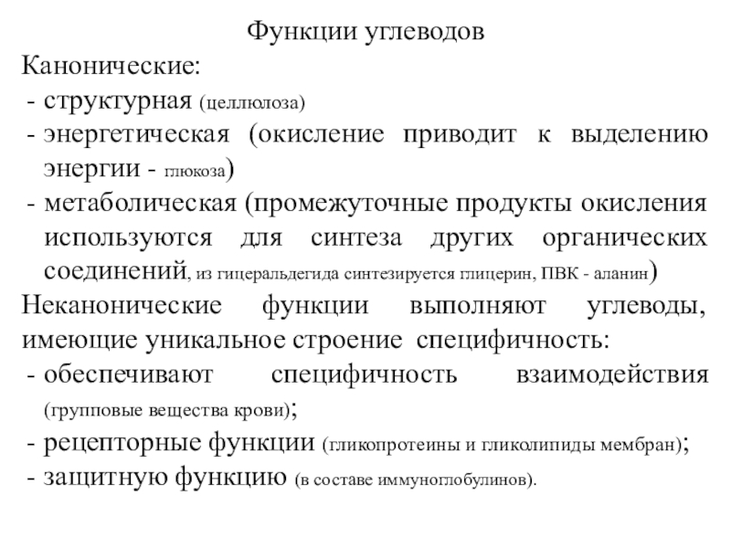Неканонические функции выполняют углеводы, имеющие уникальное строение специфичность: