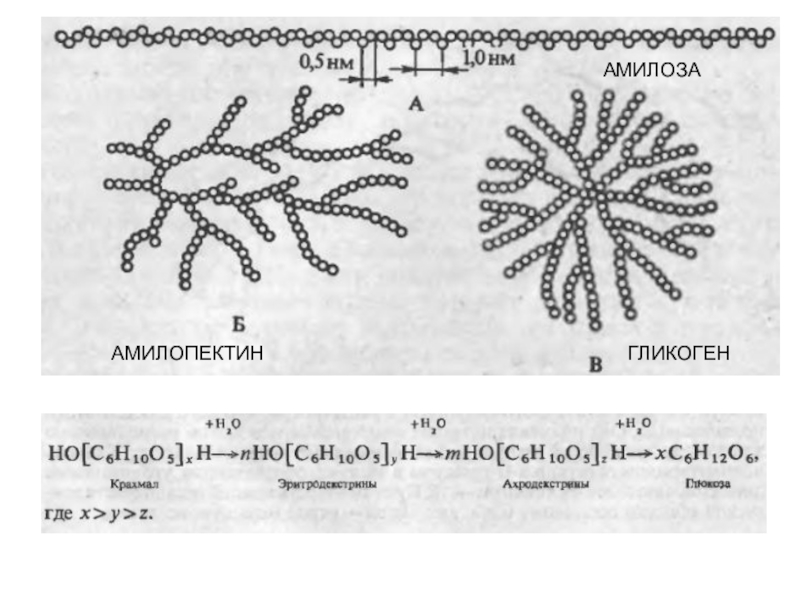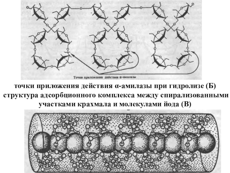 Слайд 24точки приложения действия α-амилазы при гидролизе (Б)