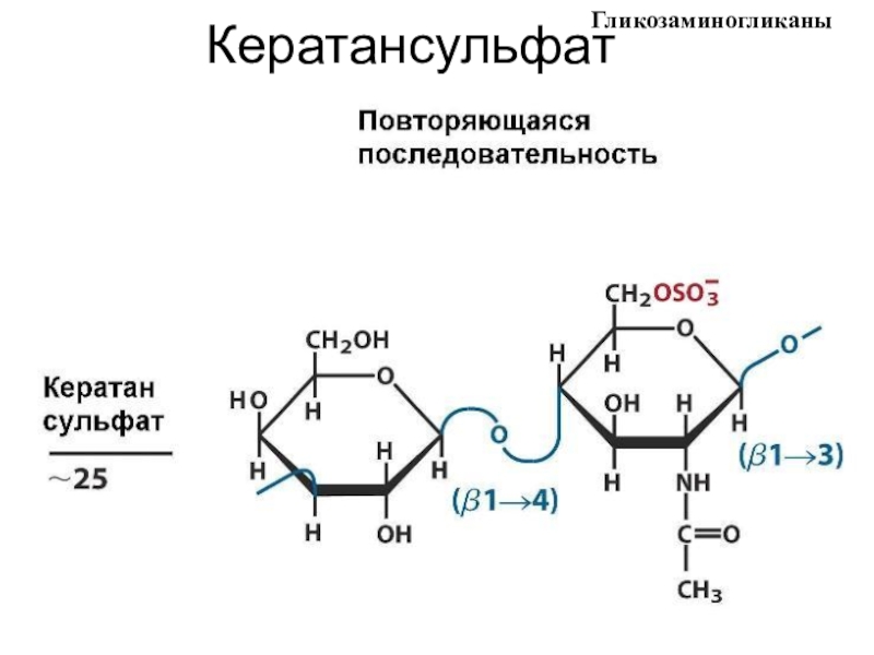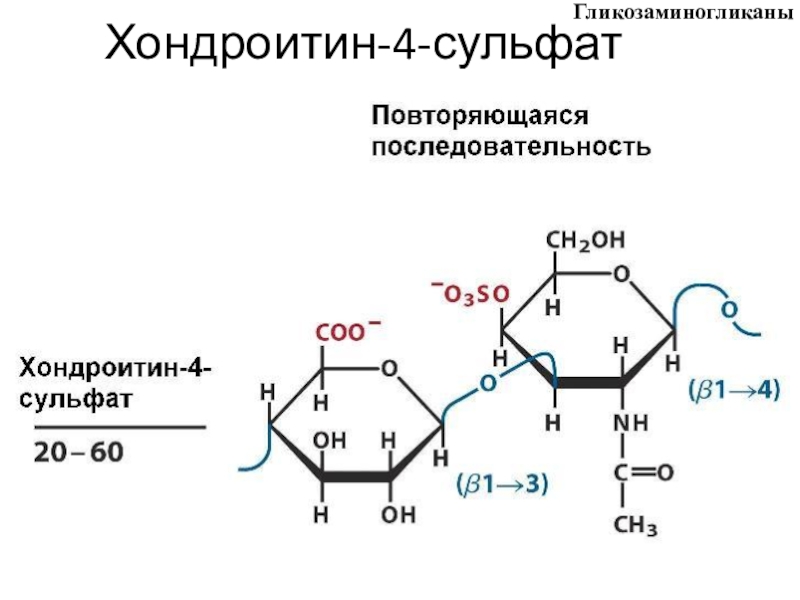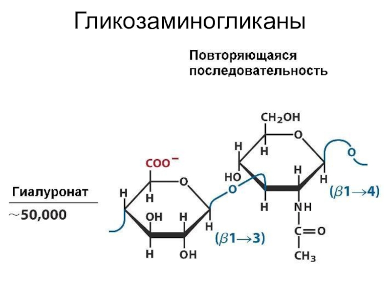 Слайд 32Гликозаминогликаны — это внеклеточные гетерополисахариды, в которых одной из двух