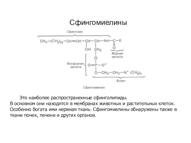 Слайд 73Сфинголипиды (много в нервной ткани, особенно в мозге) не содержат