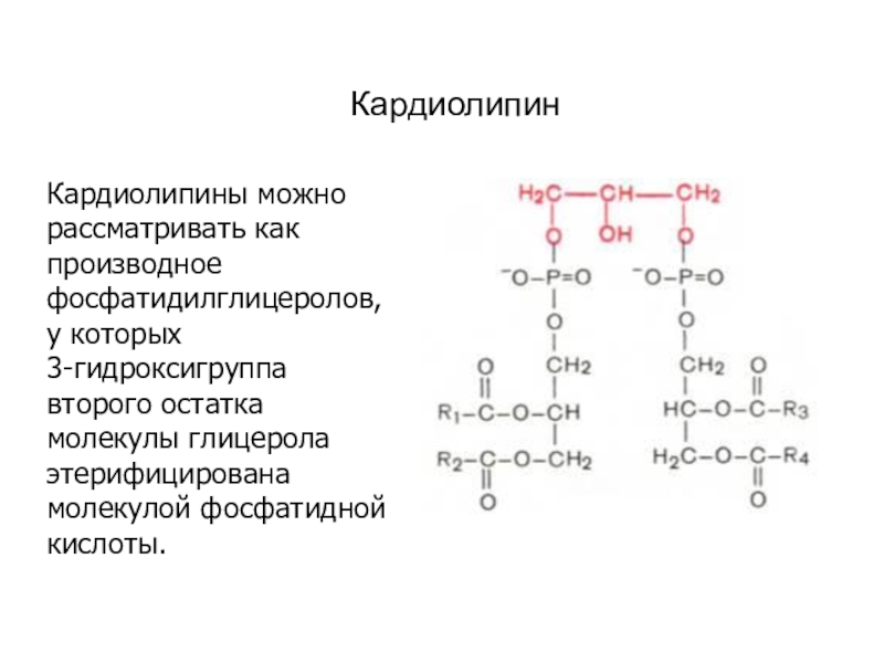 Кардиолипины можно рассматривать как производное фосфатидилглицеролов, у которых