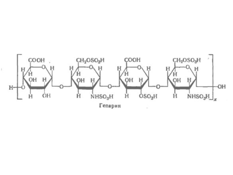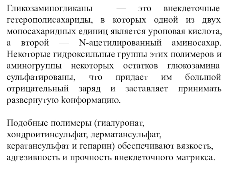 Некоторые гидроксильные группы этих полимеров и аминогруппы некоторых остатков глюкозамина сульфатированы, что придает им большой отрицательный заряд и заставляет принимать развернутую koнформацию.