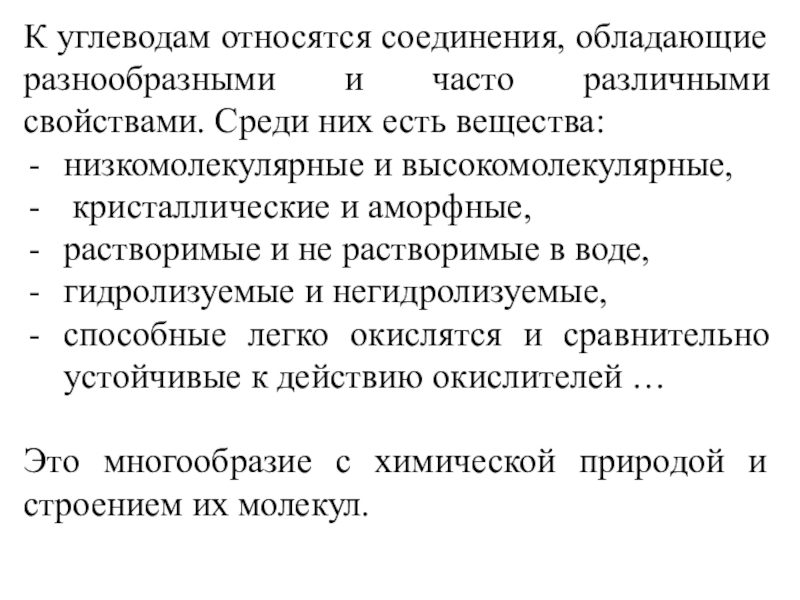 Слайд 4К углеводам относятся соединения, обладающие разнообразными и часто различными свойствами.