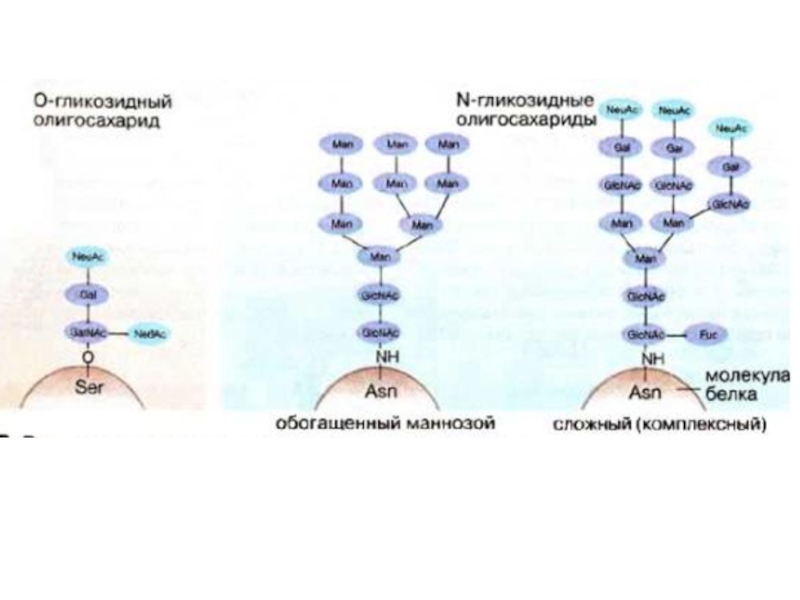 Слайд 39Гликопротеины представляют собой белки, связанные ковалентной связью с одним или