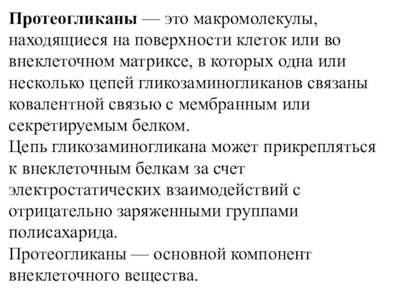 Слайд 38Протеогликаны — это макромолекулы, находящиеся на поверхности клеток или во