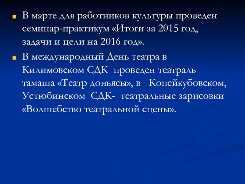 В марте для работников культуры проведен семинар-практикум «Итоги за