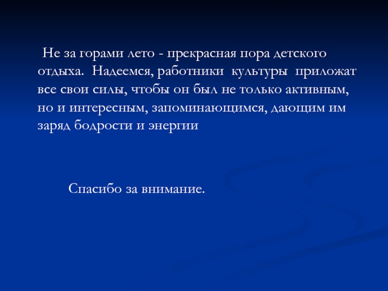 прекрасная пора детского отдыха. Надеемся, работники культуры приложат все свои