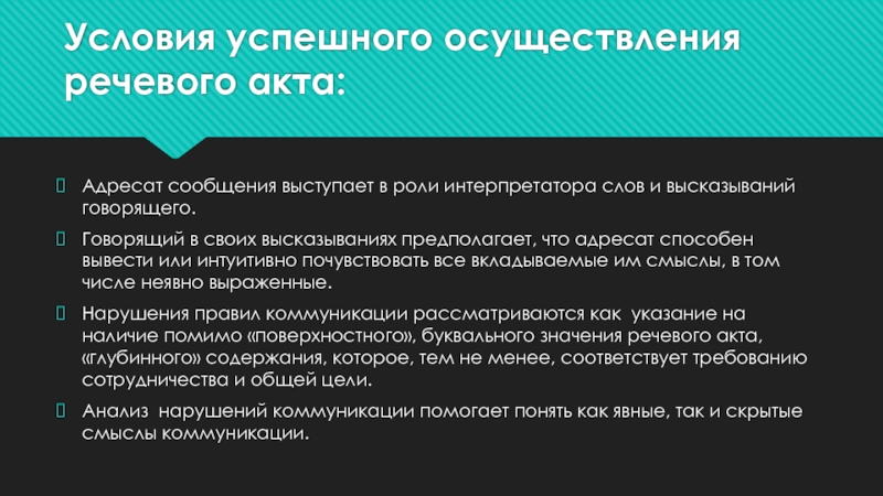 Слайд 15Условия успешного осуществления речевого акта: