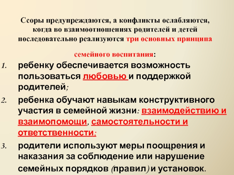 Слайд 6Ссоры предупреждаются, а конфликты ослабляются, когда во взаимоотношениях родителей и