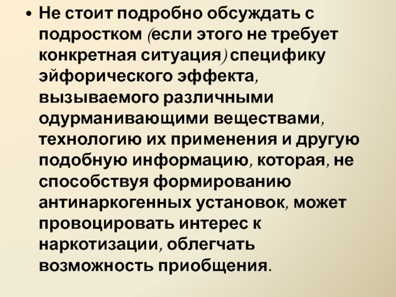 Слайд 11Не стоит подробно обсуждать с подростком (если этого не требует