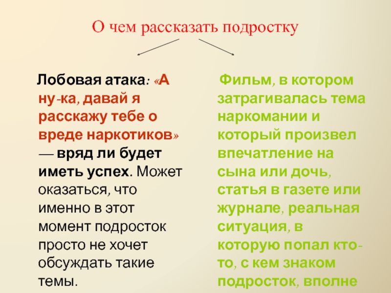 я расскажу тебе о вреде наркотиков» — вряд ли будет