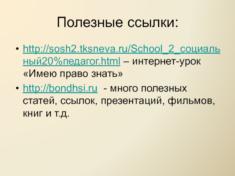 http://sosh2.tksneva.ru/School_2_социальный20%педагог.html – интернет-урок «Имею право знать»