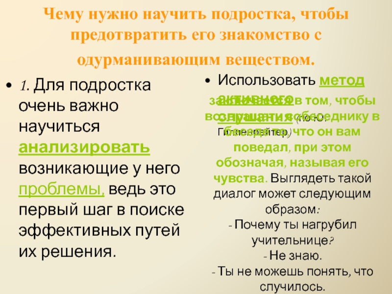 Слайд 12Чему нужно научить подростка, чтобы предотвратить его знакомство с одурманивающим