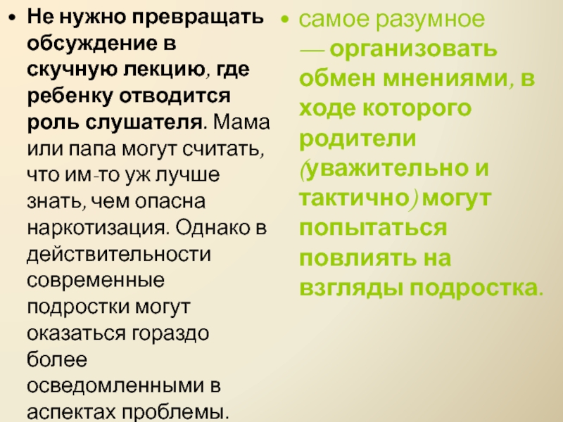 Слайд 8Не нужно превращать обсуждение в скучную лекцию, где ребенку отводится