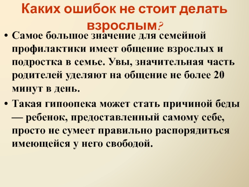 Слайд 3Каких ошибок не стоит делать взрослым?
