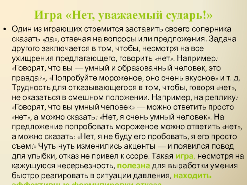 Слайд 15Игра «Нет, уважаемый сударь!»
