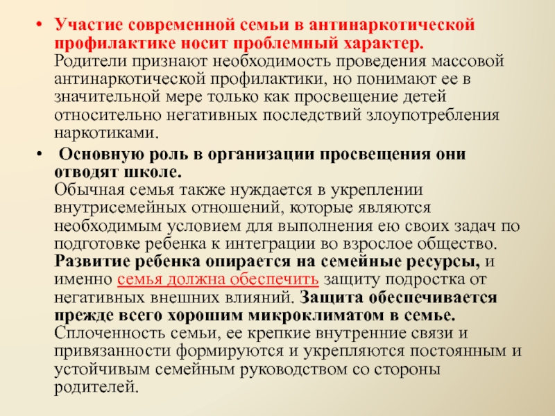 Слайд 2Участие современной семьи в антинаркотической профилактике носит проблемный характер.