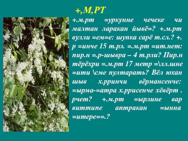 +.м.рт =уркунне чечеке чи малтан ларакан йывё=? +.м.рт вулли =ем=е: