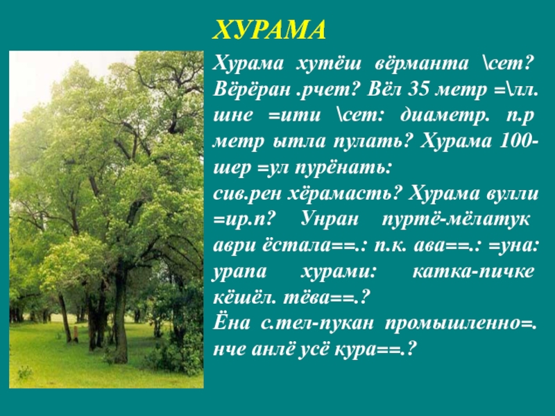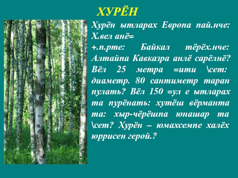 таран пулать? Вёл 150 =ул е ытларах та пурёнать: хутёш вёрманта та: хыр-чёрёшпа юнашар та \сет? Хурён – юмахсемпе халёх юррисен герой.?