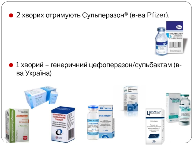 Слайд 162 хворих отримують Сульперазон® (в-ва Pfizer).