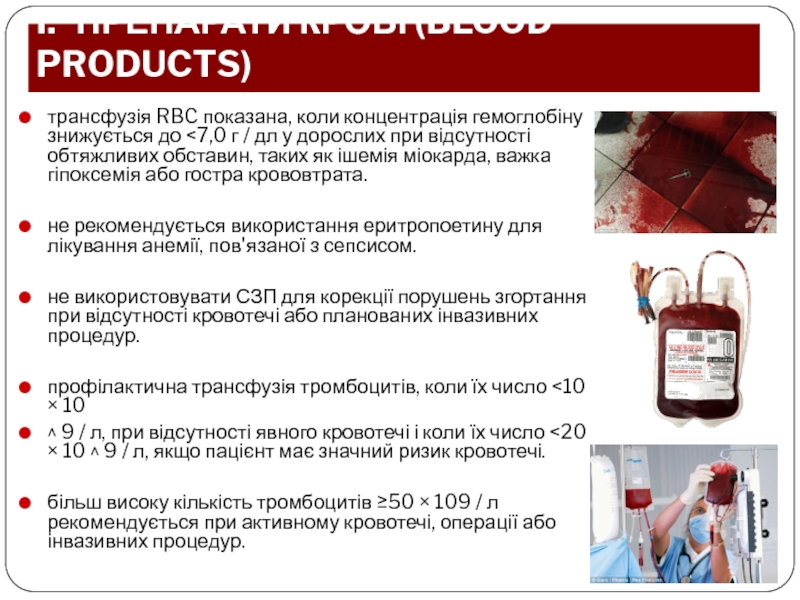 Слайд 23I. ПРЕПАРАТИ КРОВІ (BLOOD PRODUCTS)