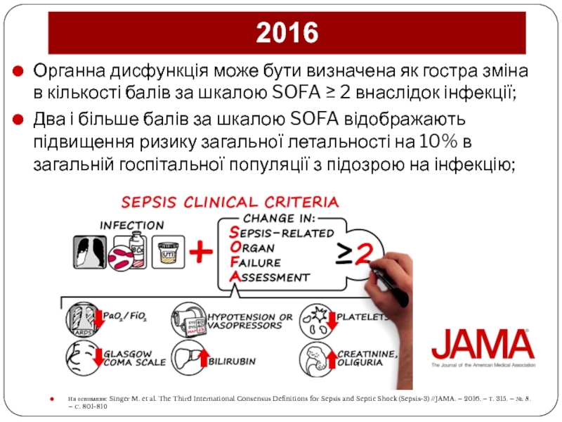 Singer M. et al. The Third International Consensus Definitions for Sepsis and Septic Shock (Sepsis-3) //JAMA. – 2016. – Т. 315. – №. 8. – С. 801-810