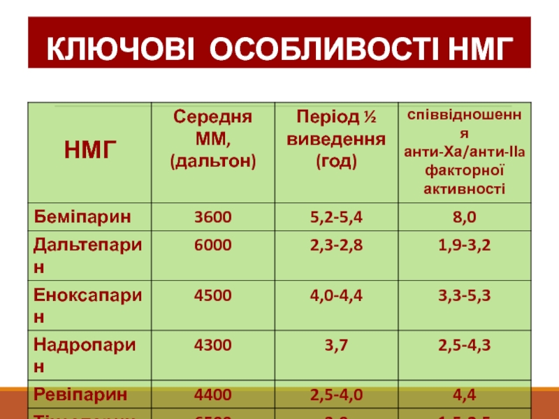 тромбоемболії (ВТЕ) нефракційованим гепарином (НФГ) або низькомолекулярних гепаринів (НМГ) при