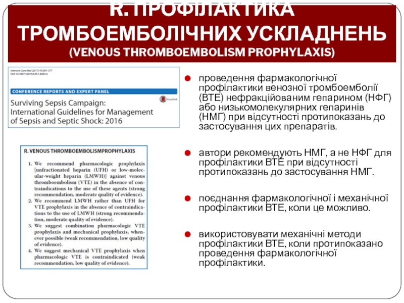 Слайд 25R. ПРОФІЛАКТИКА ТРОМБОЕМБОЛІЧНИХ УСКЛАДНЕНЬ (VENOUS THROMBOEMBOLISM PROPHYLAXIS)
