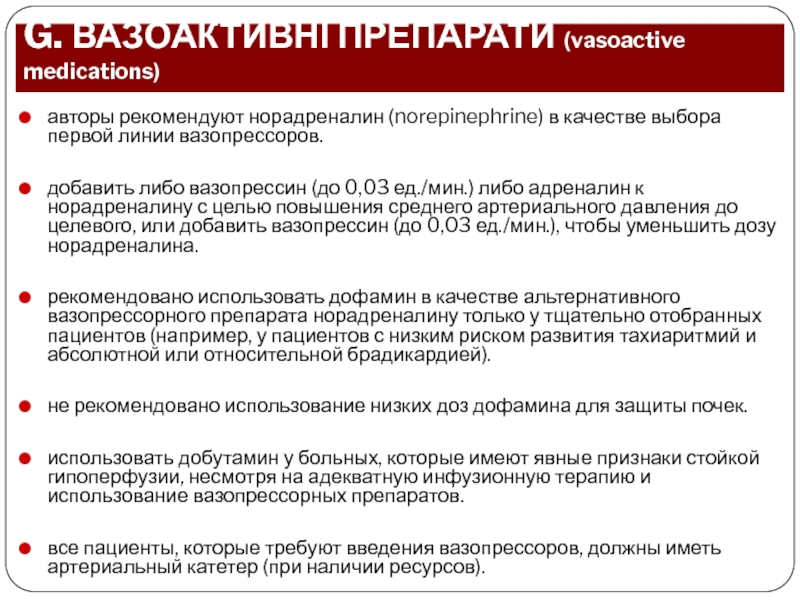 Слайд 21G. ВАЗОАКТИВНІ ПРЕПАРАТИ (vasoactive medications)