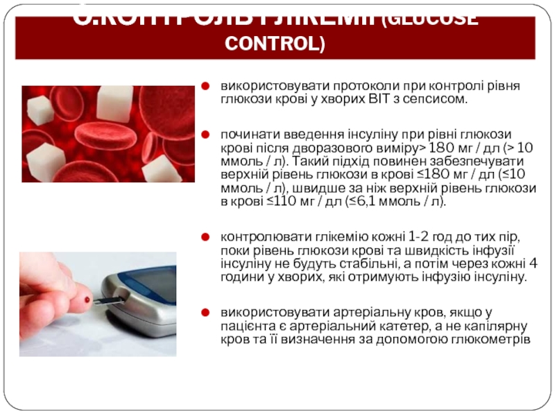 Слайд 24O. КОНТРОЛЬ ГЛІКЕМІЇ (GLUCOSE CONTROL)
