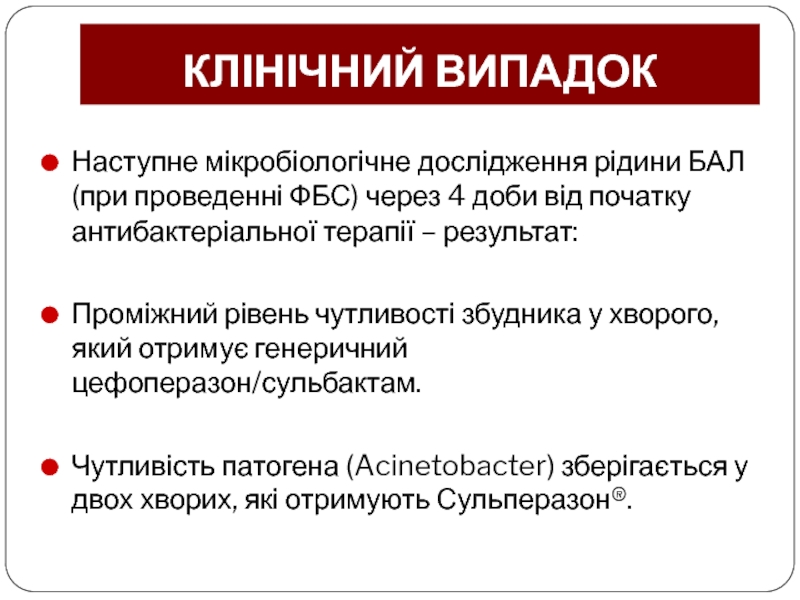 Слайд 19Двом пацієнтам з ВАП, яким проводили антибактеріальну терапію Сульперазоном, на