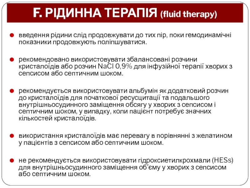 Слайд 20F. РІДИННА ТЕРАПІЯ (fluid therapy)