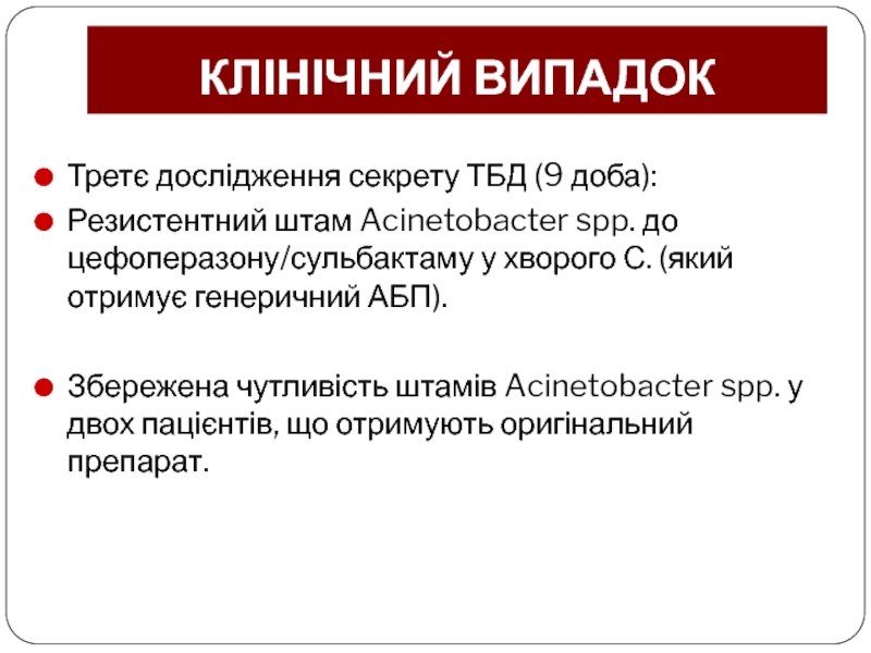 цефоперазону/сульбактаму у хворого С. (який отримує генеричний АБП).