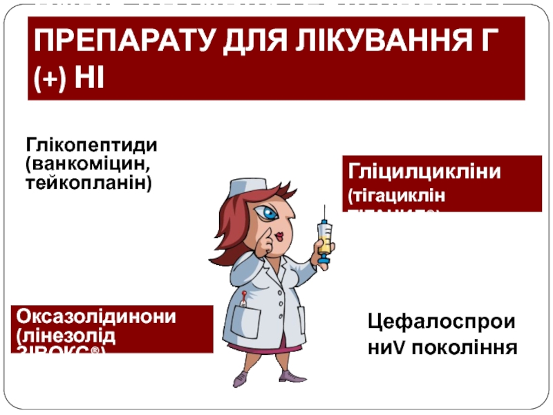 Слайд 12ВИБІР АНТИБАКТЕРІАЛЬНОГО ПРЕПАРАТУ ДЛЯ ЛІКУВАННЯ Г(+) НІ