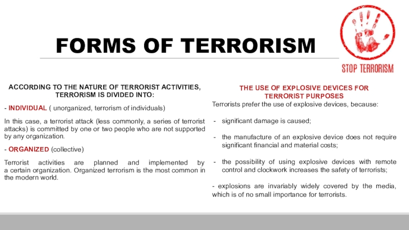 the possibility of using explosive devices with remote control and clockwork increases the safety of terrorists;