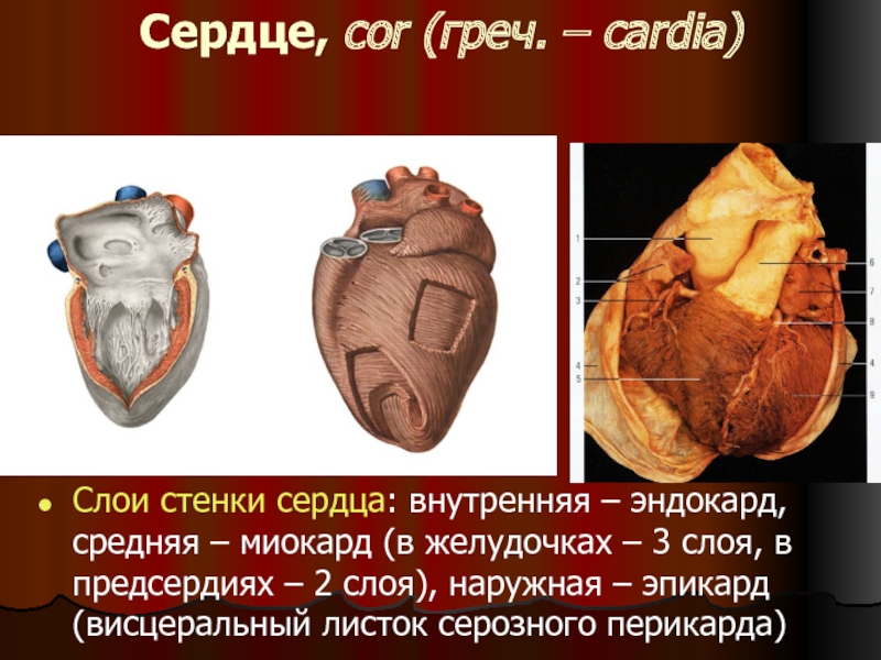 – 2 слоя), наружная – эпикард (висцеральный листок серозного перикарда)