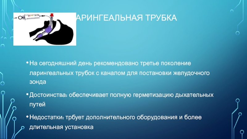 На сегодняшний день рекомендовано третье поколение ларингеальных трубок с каналом
