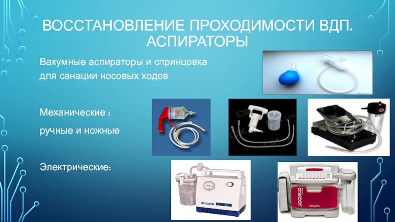 Слайд 17Восстановление проходимости ВДП. Аспираторы