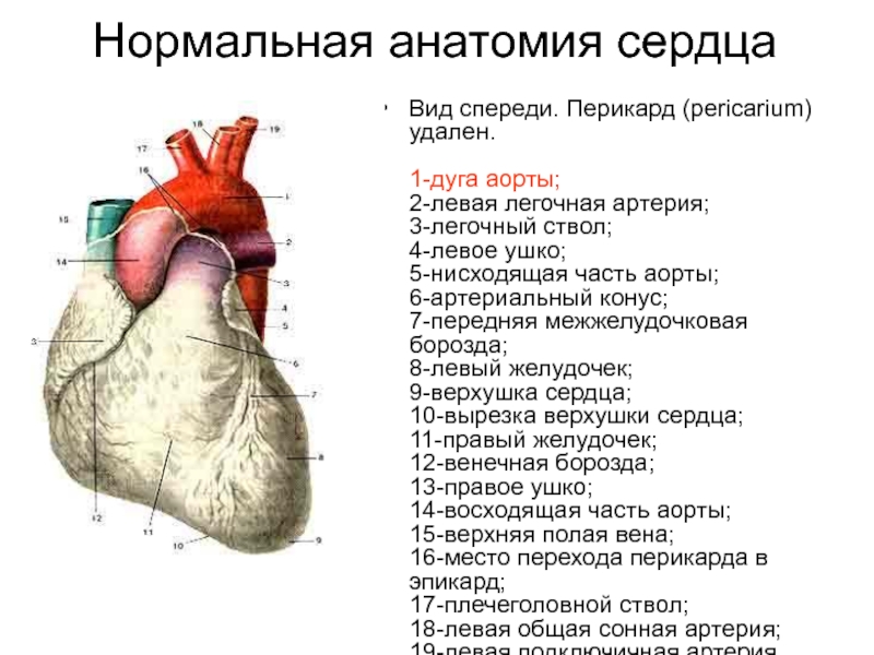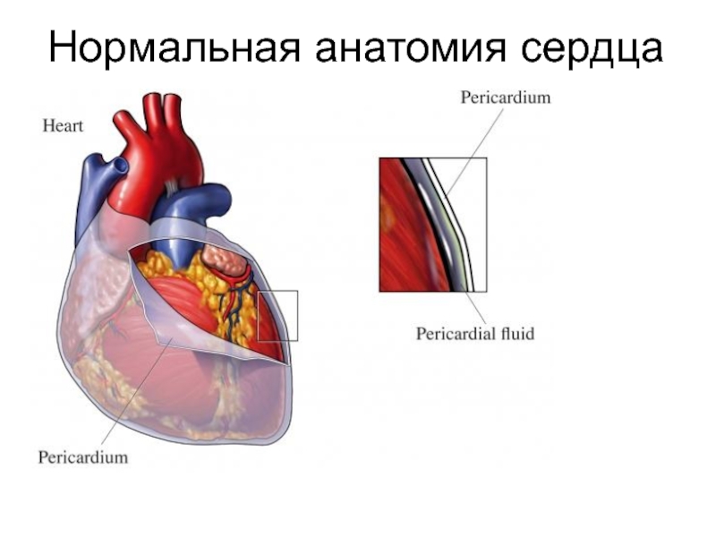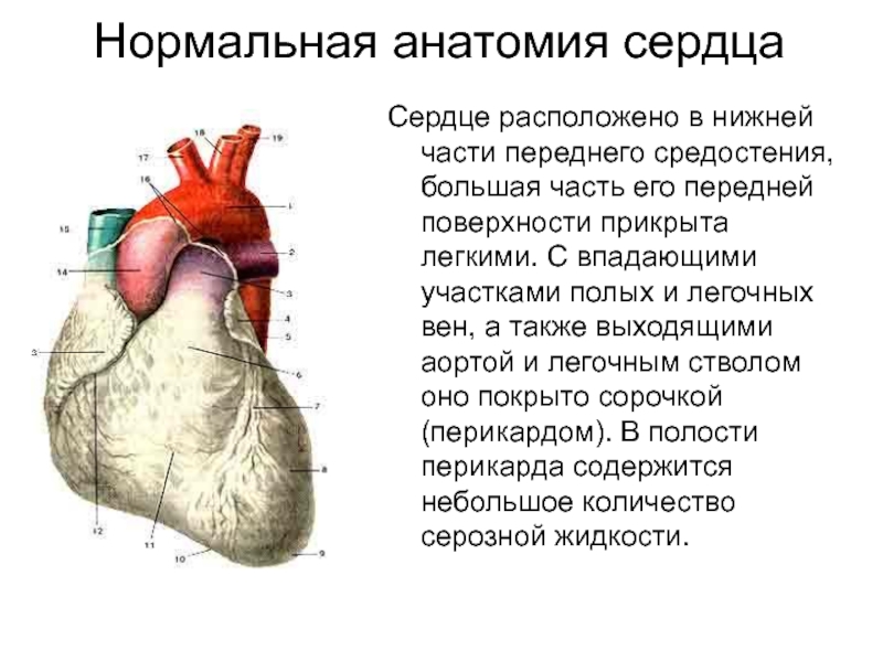 и легочных вен, а также выходящими аортой и легочным стволом оно покрыто сорочкой (перикардом). В полости перикарда содержится небольшое количество серозной жидкости.
