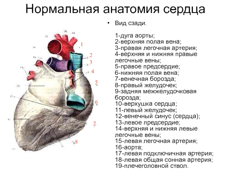 правый край сердца. Обе артерии дают многочисленные ветви к стенкам предсердий и желудочков. Отток крови от сердца происходит в венечный синус, передние вены сердца и вены, впадающие непосредственно в правое сердце. Венечный синус находится в заднем отделе венечной борозды между LA и LV. Его устье располагается в углу между нижней частью задней стенки RA и межпредсердной перегородкой ниже заслонки нижней полой вены. Отверстие синуса прикрыто заслонкой. В системе оттока от сердца большое значение принадлежит и лимфатическому руслу.