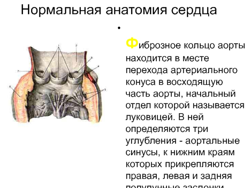 В ней определяются три углубления - аортальные синусы, к нижним краям которых прикрепляются правая, левая и задняя полулунные заслонки, формирующие клапан аорты.