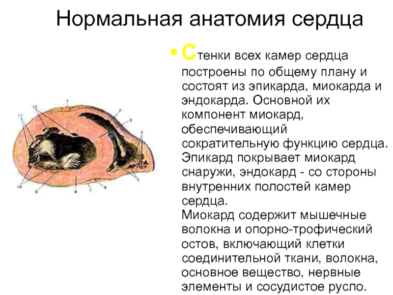 и состоят из эпикарда, миокарда и эндокарда. Основной их компонент
