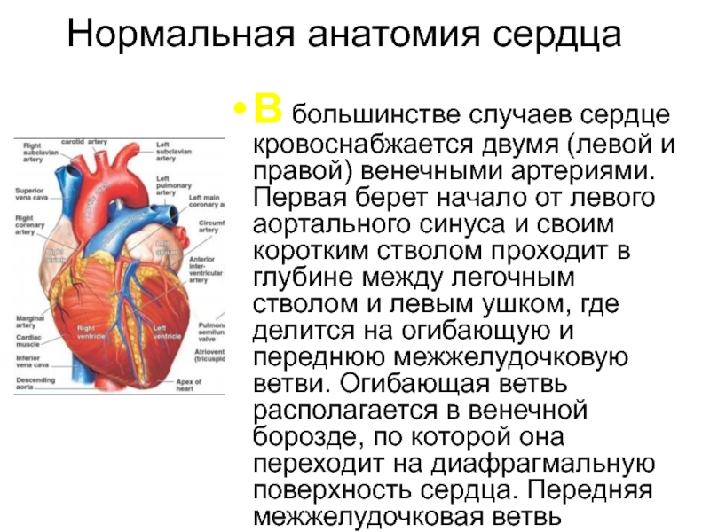 В большинстве случаев сердце кровоснабжается двумя (левой и