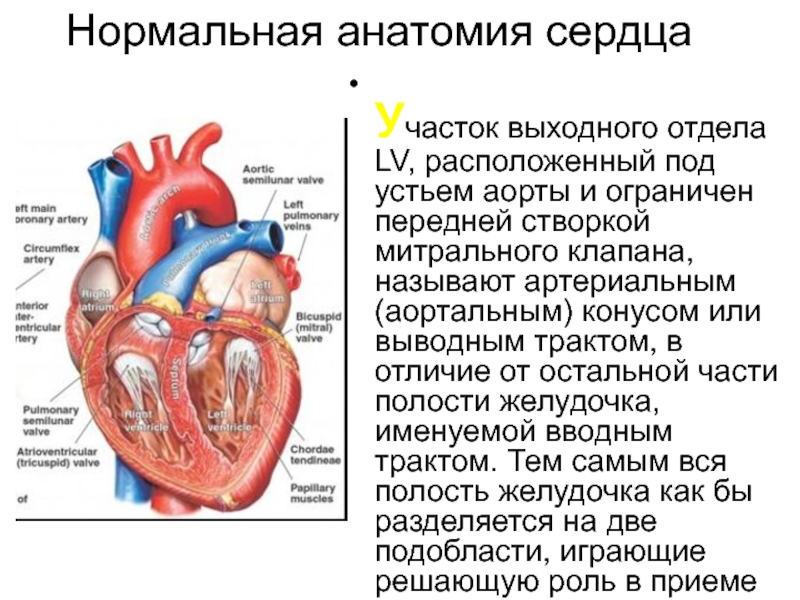 или выводным трактом, в отличие от остальной части полости желудочка, именуемой вводным трактом. Тем самым вся полость желудочка как бы разделяется на две подобласти, играющие решающую роль в приеме крови из предсердия и изгнании через аорту в BCC.