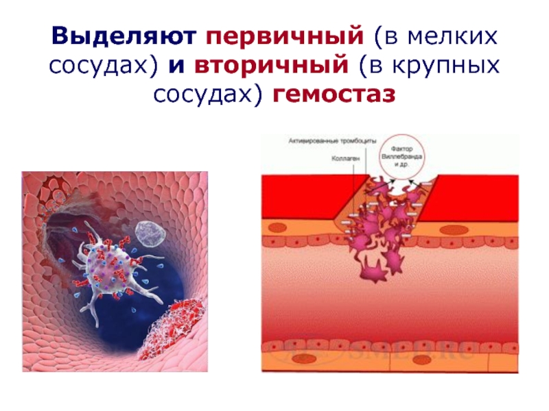 Слайд 26Выделяют первичный (в мелких сосудах) и вторичный (в крупных сосудах)