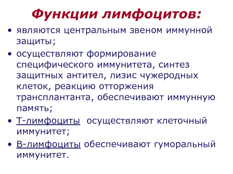 – осуществление неспецифического и специфического иммунитета, свертывание крови, фагоцитоз;
