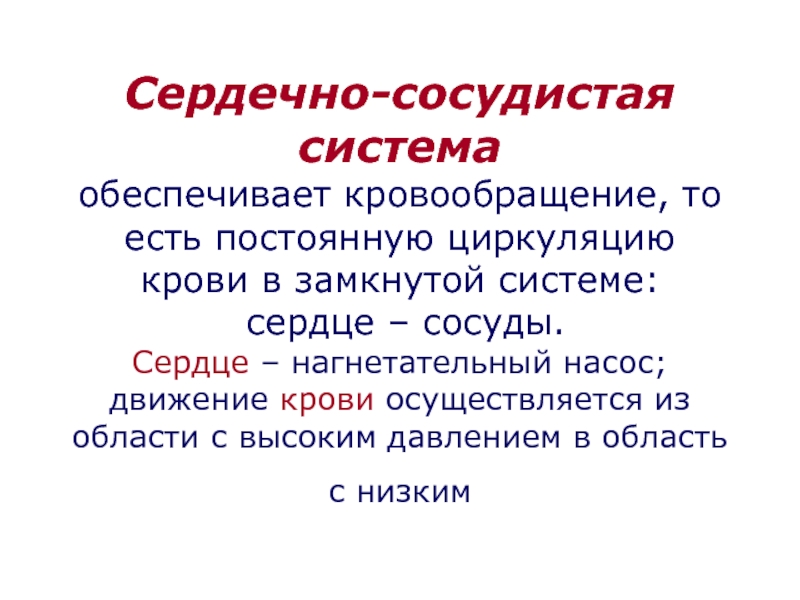 обеспечивает кровообращение, то есть постоянную циркуляцию крови в