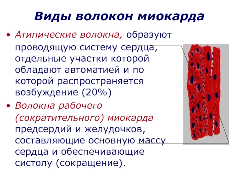 Волокна рабочего (сократительного) миокарда предсердий и желудочков, составляющие основную массу сердца и обеспечивающие систолу (сокращение).