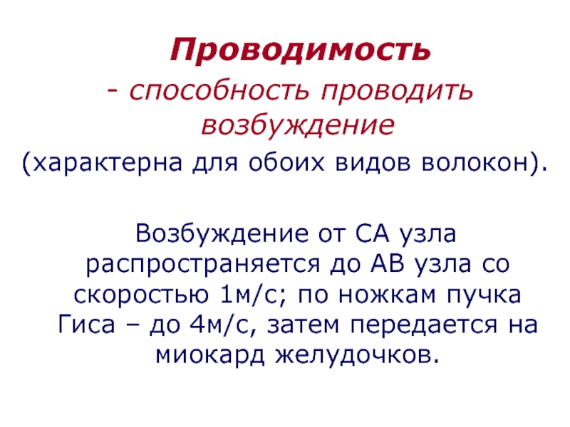 1м/с; по ножкам пучка Гиса – до 4м/с, затем передается на миокард желудочков.