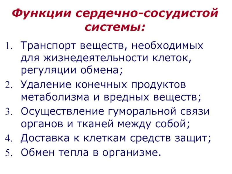 Транспорт веществ, необходимых для жизнедеятельности клеток, регуляции обмена;